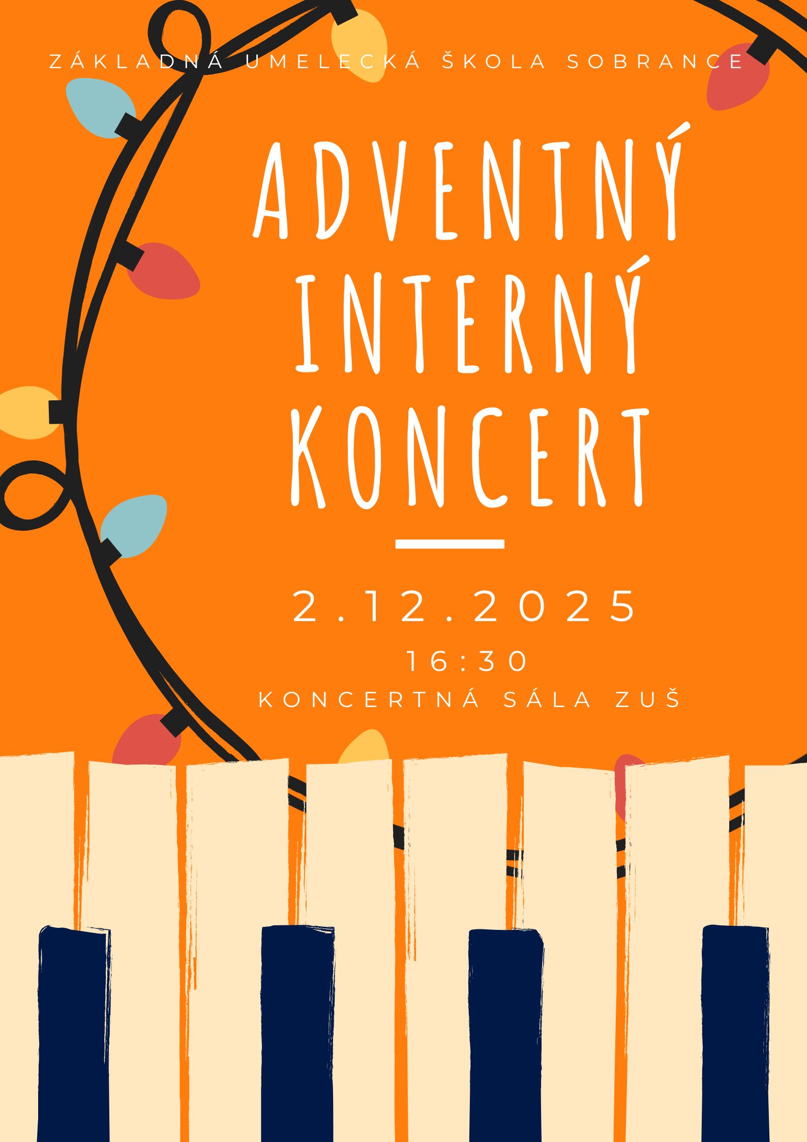s radosťou vás pozývame na adventný interný koncert, ktorý sa uskutoční 2. decembra 2025 o 16:30 v koncertnej sále v budove Základnej umeleckej školy.